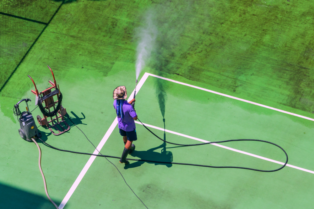 Artificial grass is generally sold as being virtually maintenance free, but this is misleading. We firmly believe that, actually, it needs regular maintenance. For example, artificial football pitches and tennis courts can soak up sweat, spit, etc, and in these environments bacteria germinate. These can subsequently cause any small injuries that occur to become infected. In order to ensure they are safe to use, we firmly believe that these surfaces need regular disinfecting as well as cleaning and re-sanding.
